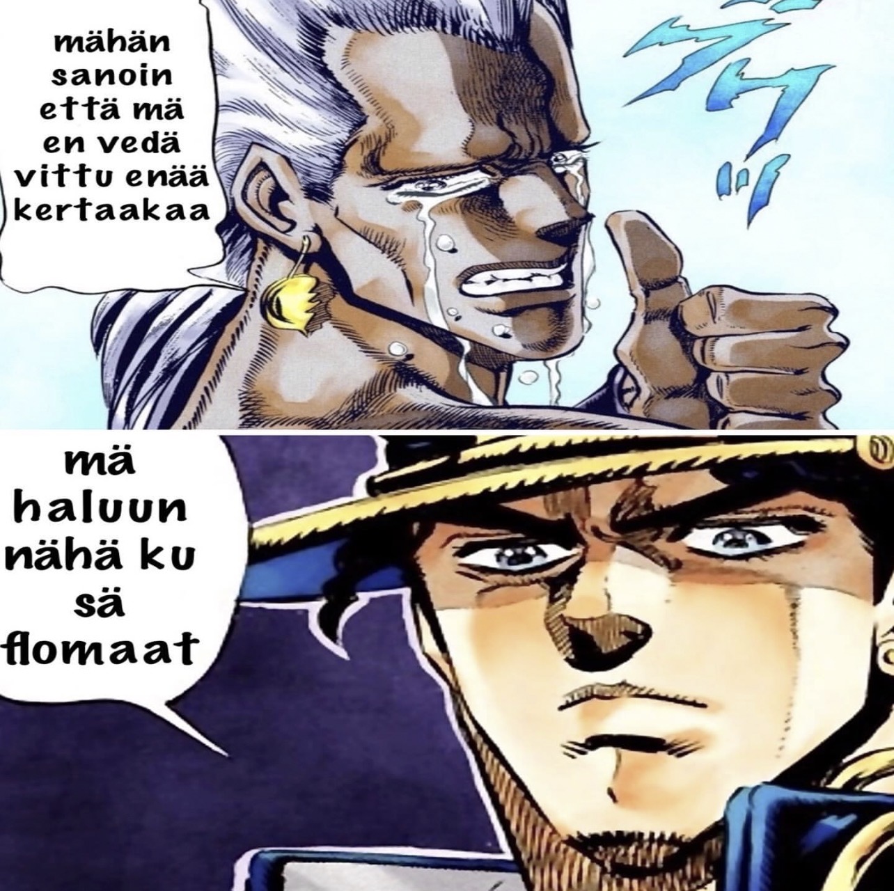 Toisinaan teen vaan hassuja kuvia tietyille kohderyhmille, kuten esim. JoJo’s Bizarre Adventure -meemejä, vocaloid-shitpostia, turrimeemejä yms.”
